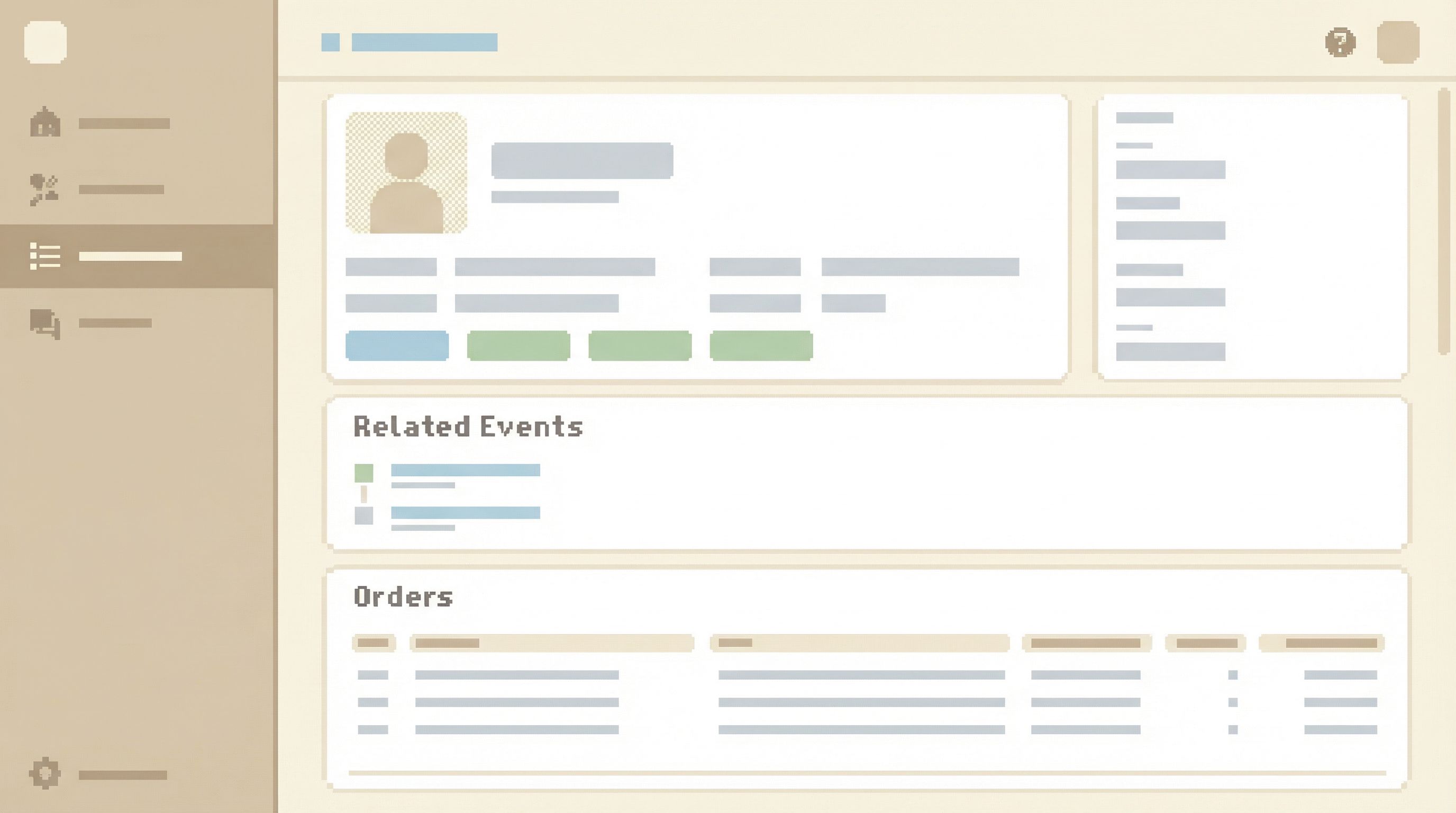 - Surface related links: “View events”, “View payments”, “View support tickets”