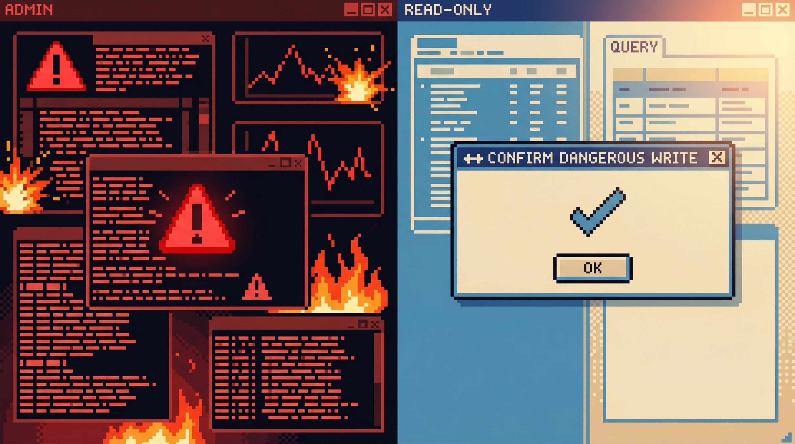 SELECTvsINSERT/UPDATE/DELETE. - Read‑only connections by default; write access is explicit and rare.